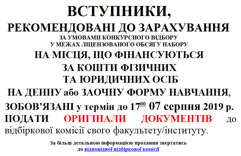 Рекомендовані до зарахування на навчання за контрактом - Магістр без ЗНО - 2019
