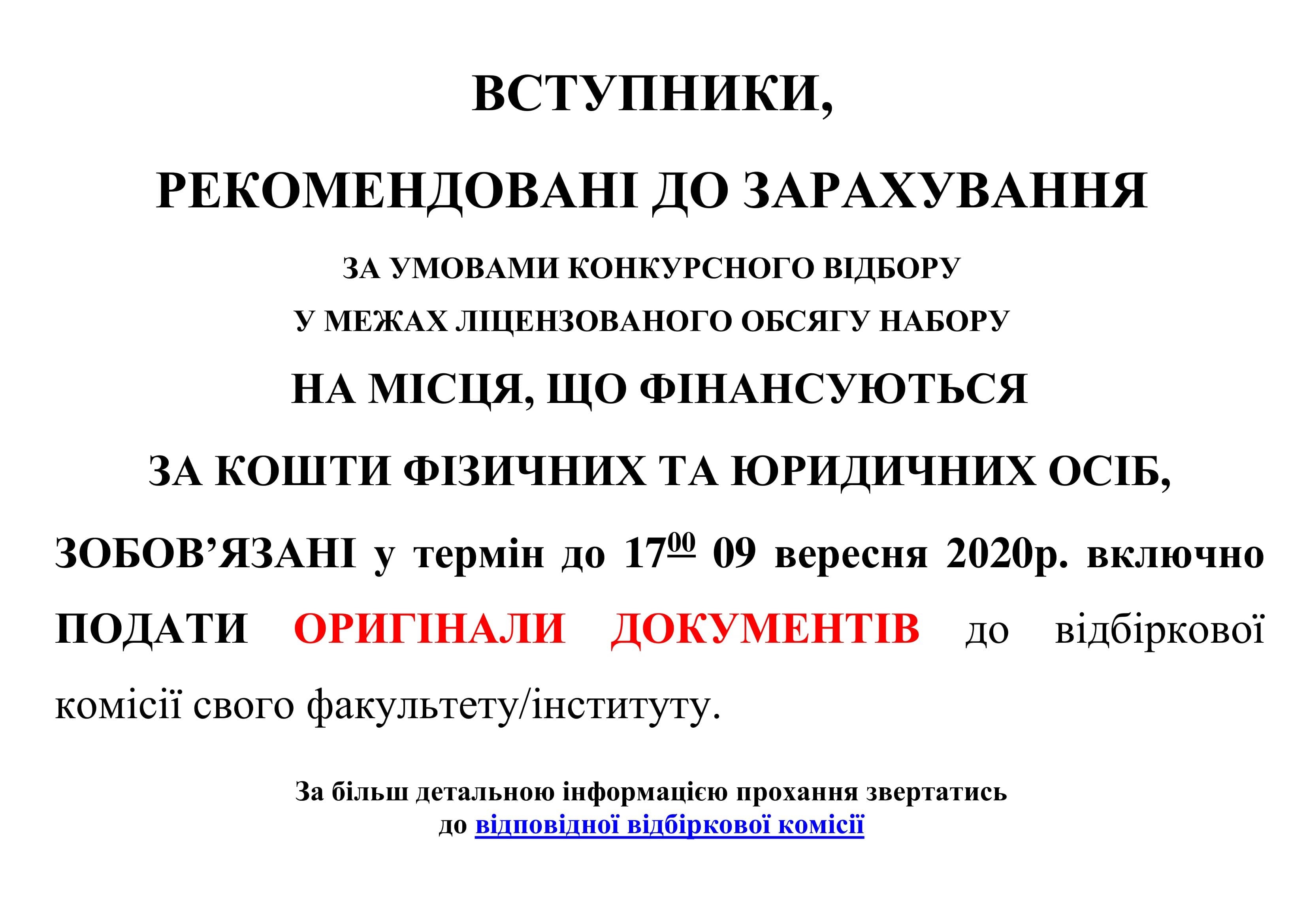Рекомендовані до зарахування на контракт для фіксованих конкурсних пропозицій - 2020 - Бакалавр зі скороченим терміном навчання
