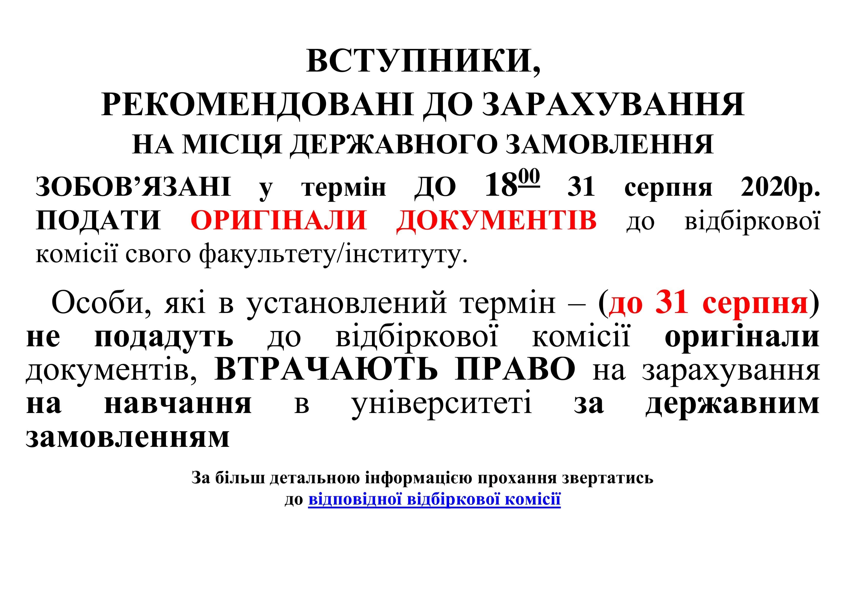 Рекомендовані до зарахування на місця державного замовлення для відкритих конкурсних пропозицій - 2020 - Бакалавр (ПЗСО)