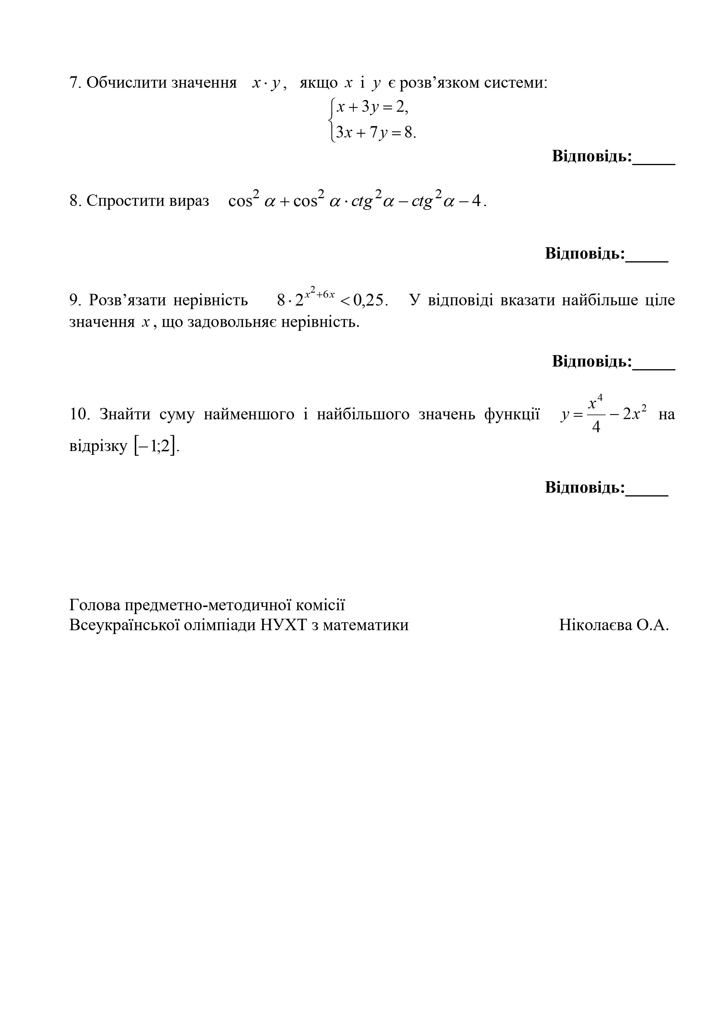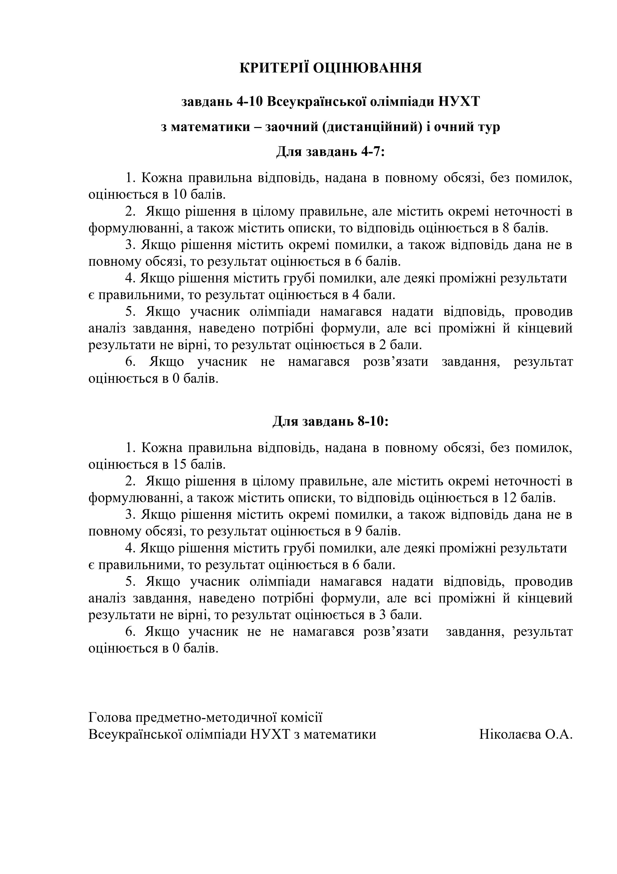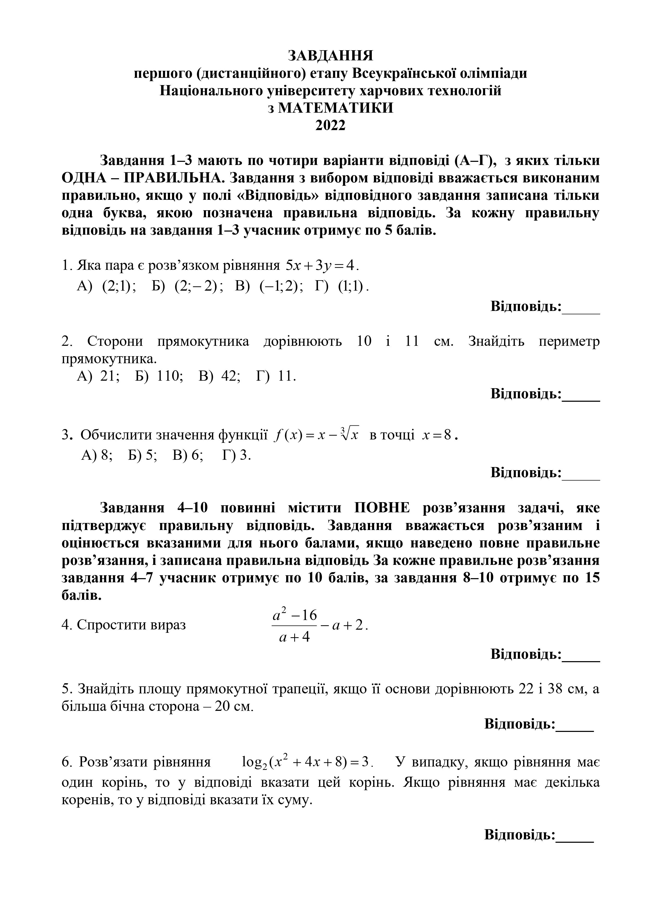 Національного університету харчових технологій з МАТЕМАТИКИ