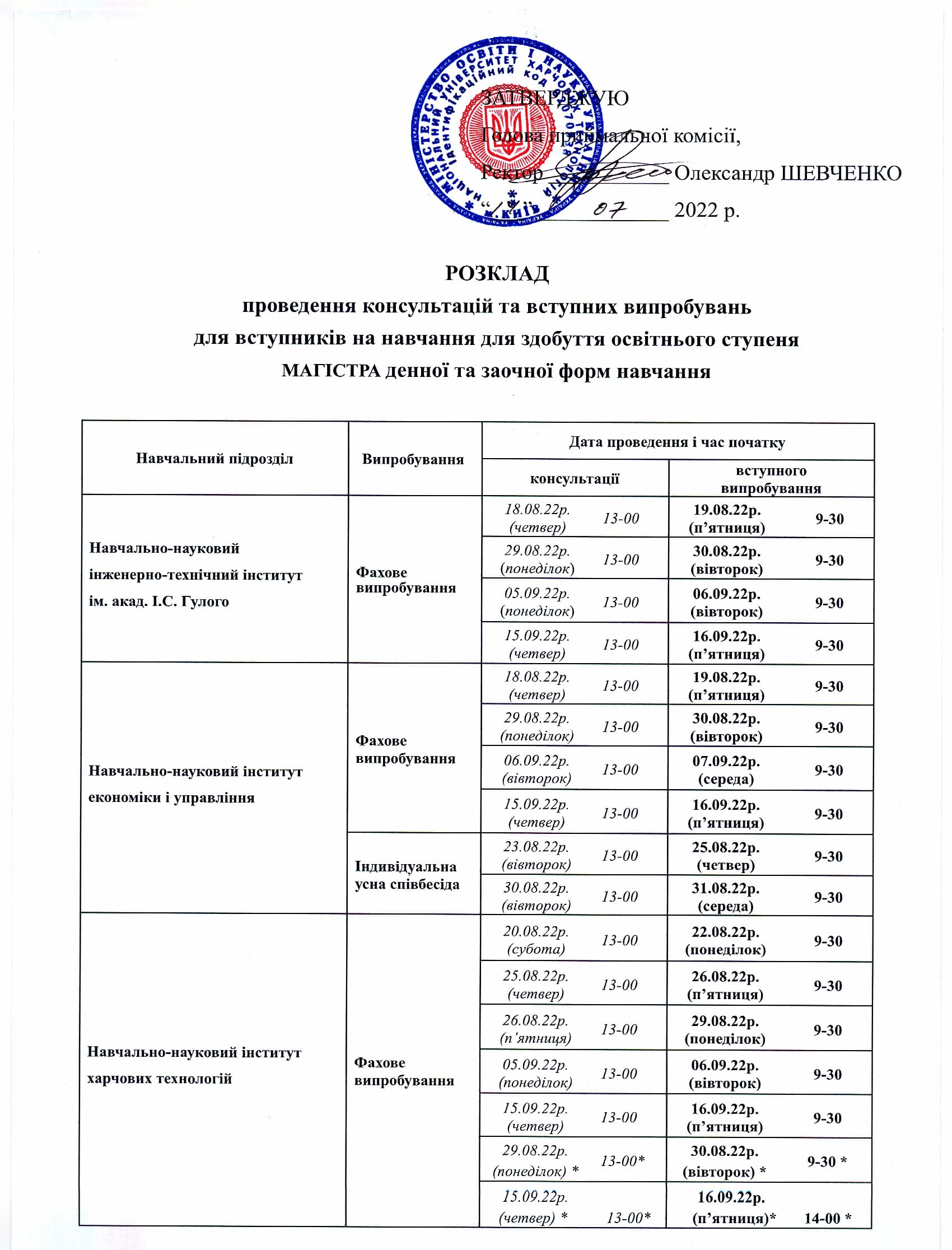 ГРАФІК ПОДАННЯ ЗАЯВ ПРО АКРЕДИТАЦІЮ