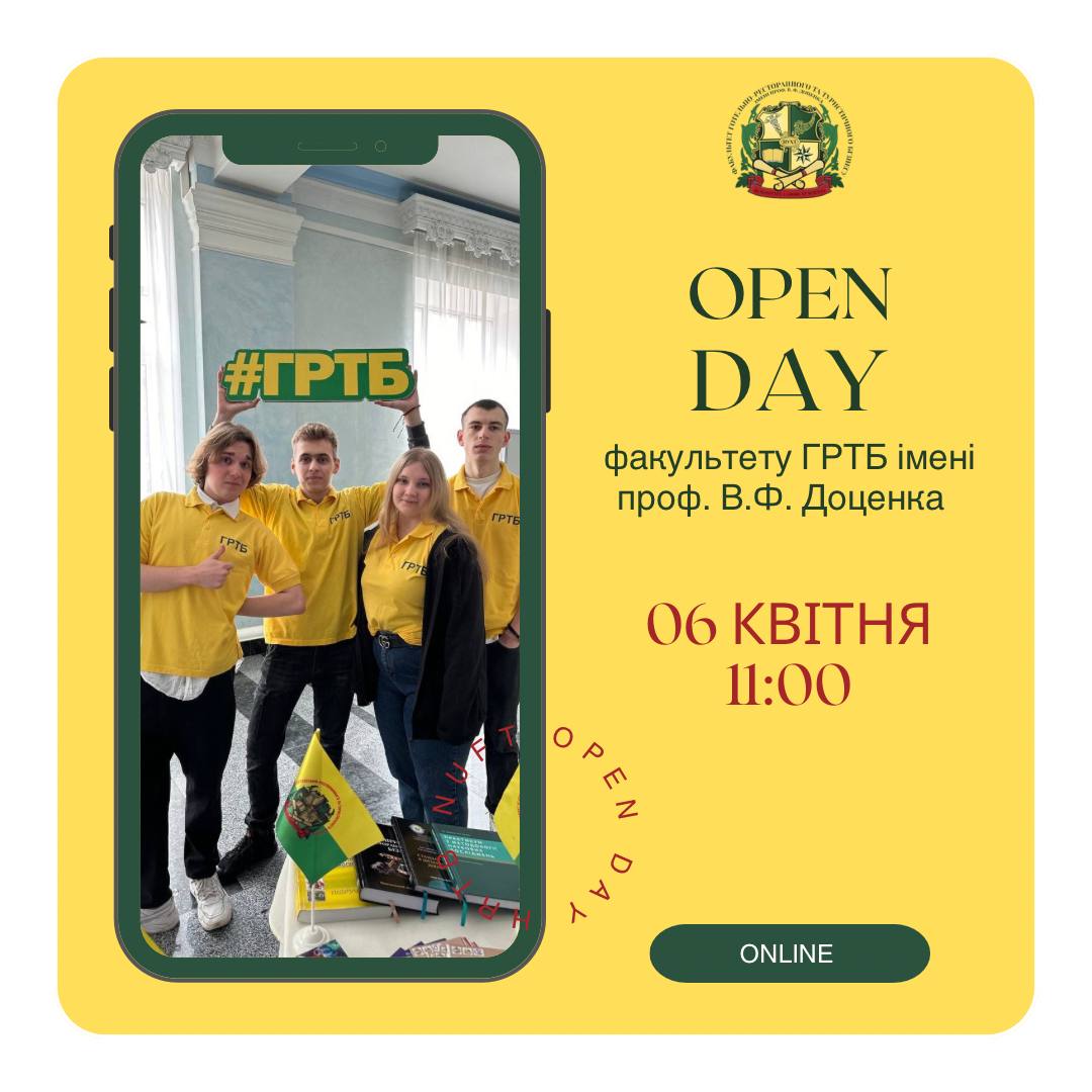 Запрошуємо вас на OPEN DAY факультету ГРТБ імені проф. В.Ф.Доценка в онлайн-форматі.