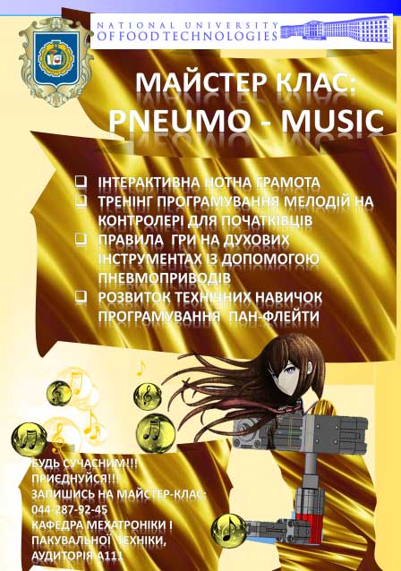 Висококваліфіковані фахівці кафедри мехатроніки і пакувальної техніки ознайомлять Вас із сучасними технічними рішеннями щодо інтегрування сучасних контролерів у світ кодування звуками; на прикладі нотної грамоти навчать поетапно створювати логічні ланцюги для подальшої роботи із технологічним обладнанням в харчовій галузі та пакувальній індустрії.