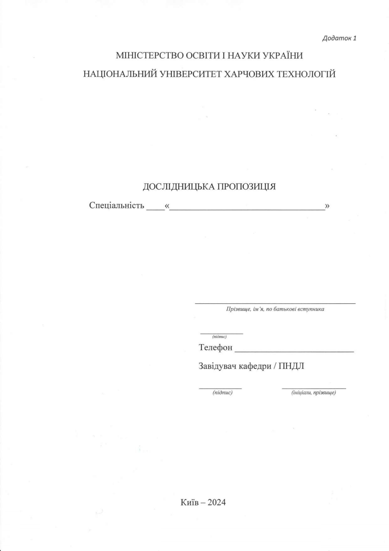 Зразок формального оформлення дослідницької пропозиції поданий у додатку 1: