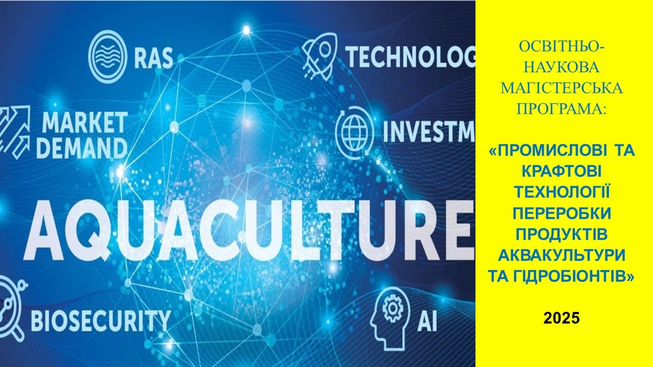 Підготовка фахівців другого (магістерського) рівня вищої освіти у галузі знань G «Інженерія, виробництво та будівництво» за спеціальністю G13 «Харчові технології» та освітньо-науковою програмою «Промислові та крафтові технології переробки продуктів аквакультури та гідробіонтів»