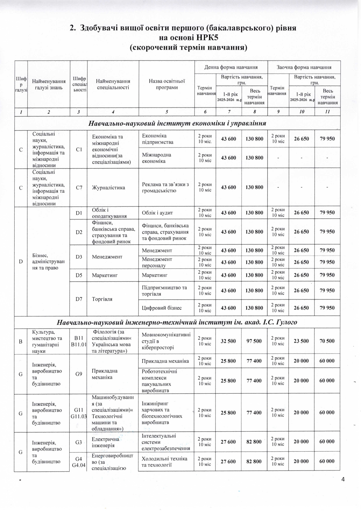 Вартість бакалавр СКОРОЧЕНИКИ 2025