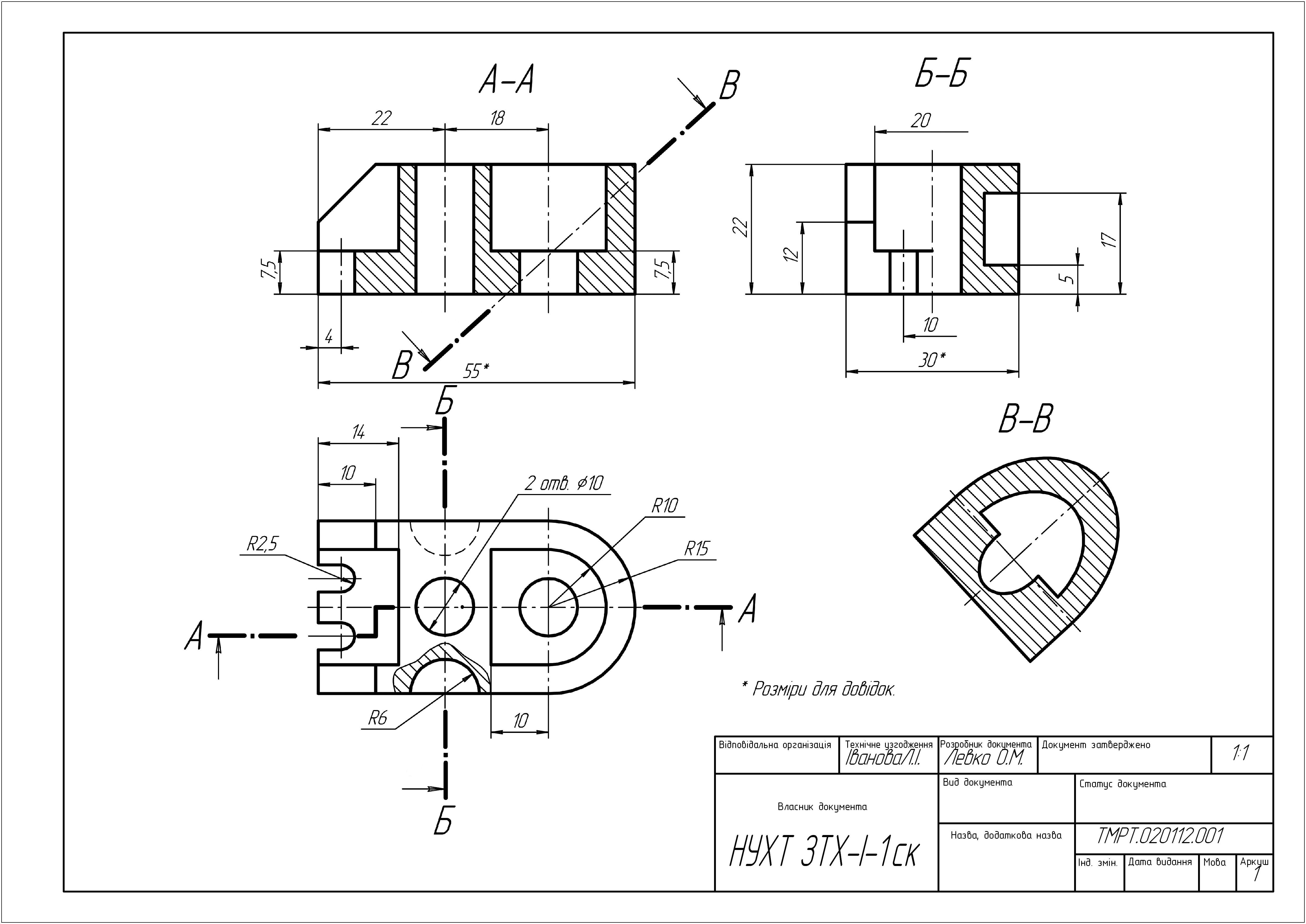 Для побудови видів деталі потрібно мати інформацію про її розміри (рис. 2).