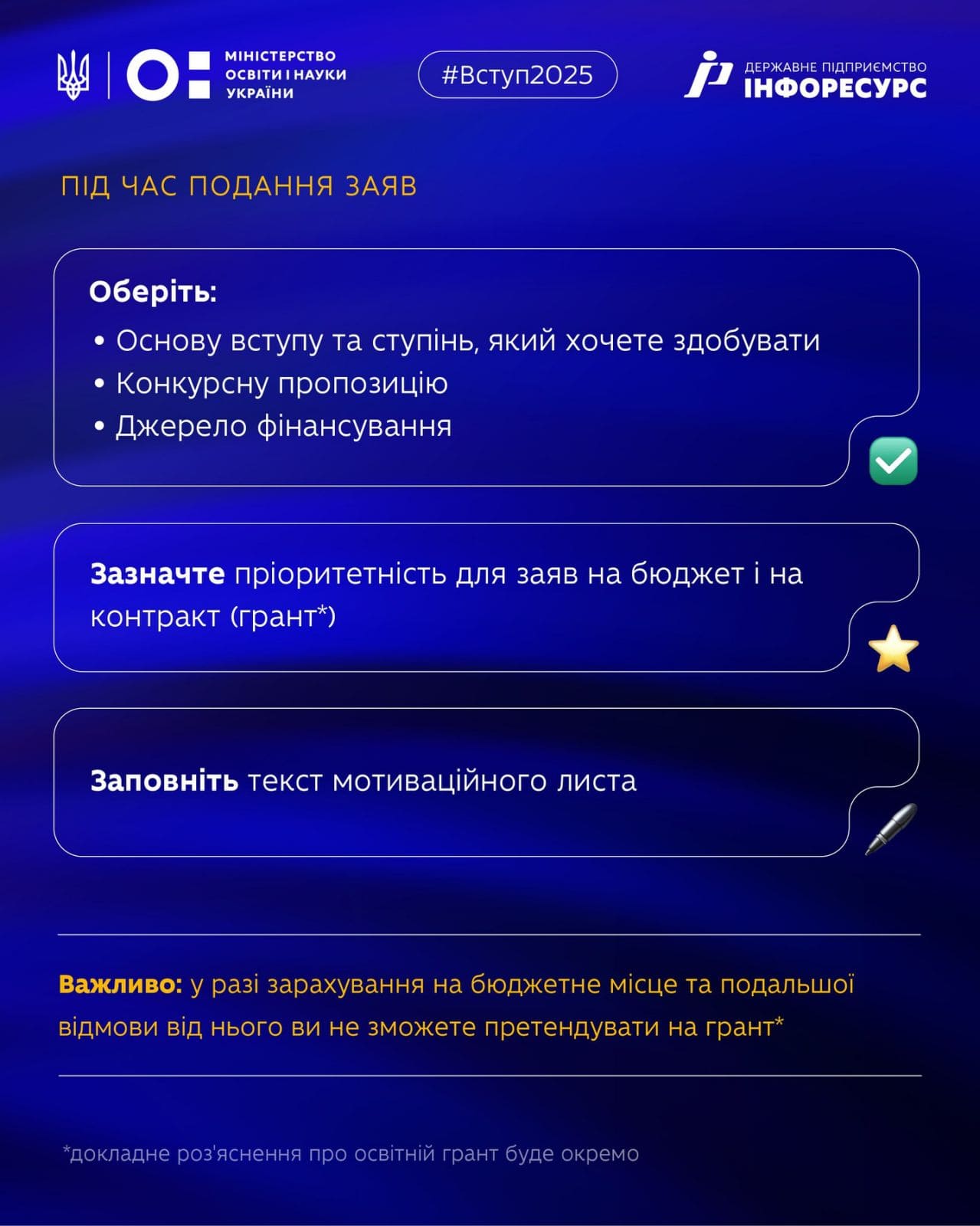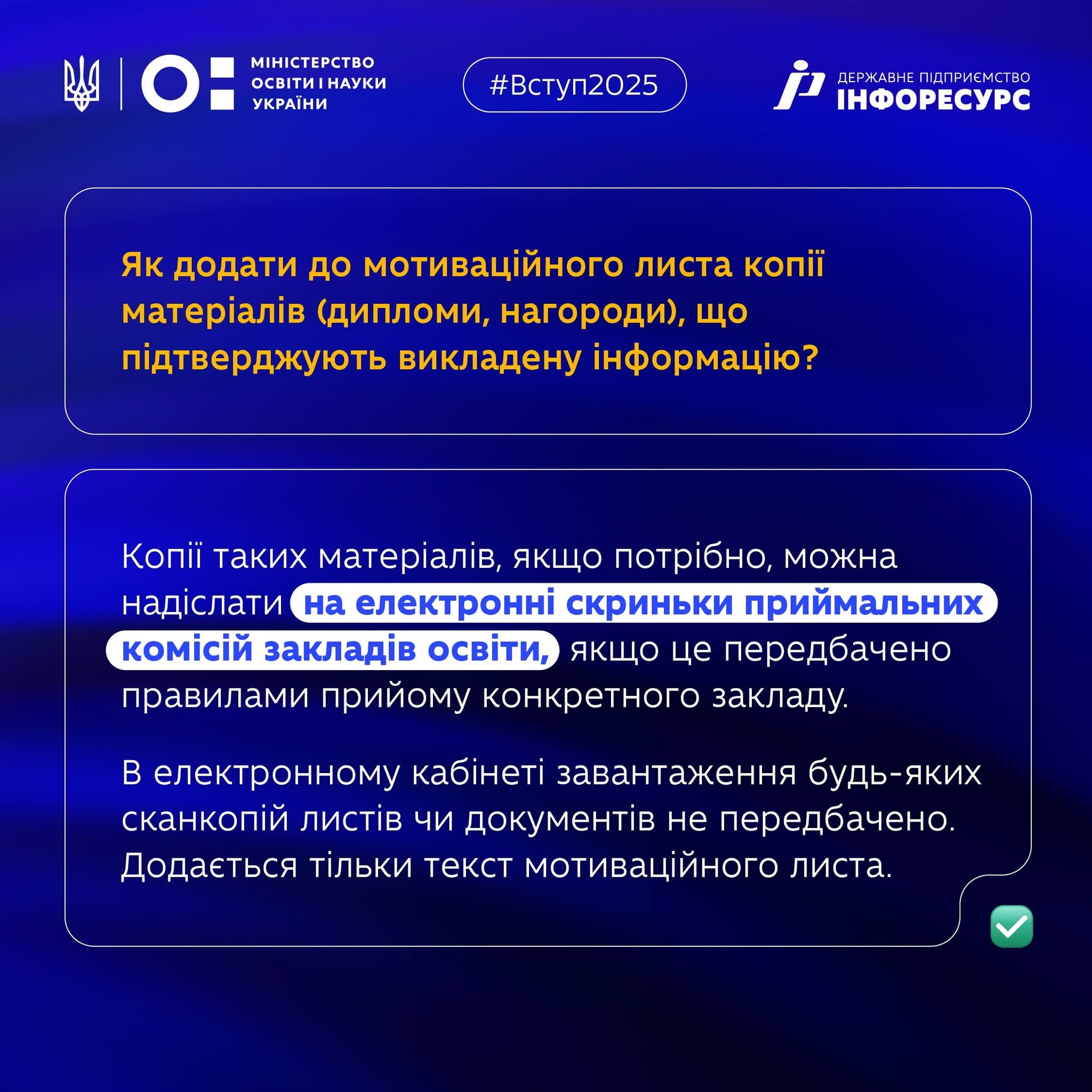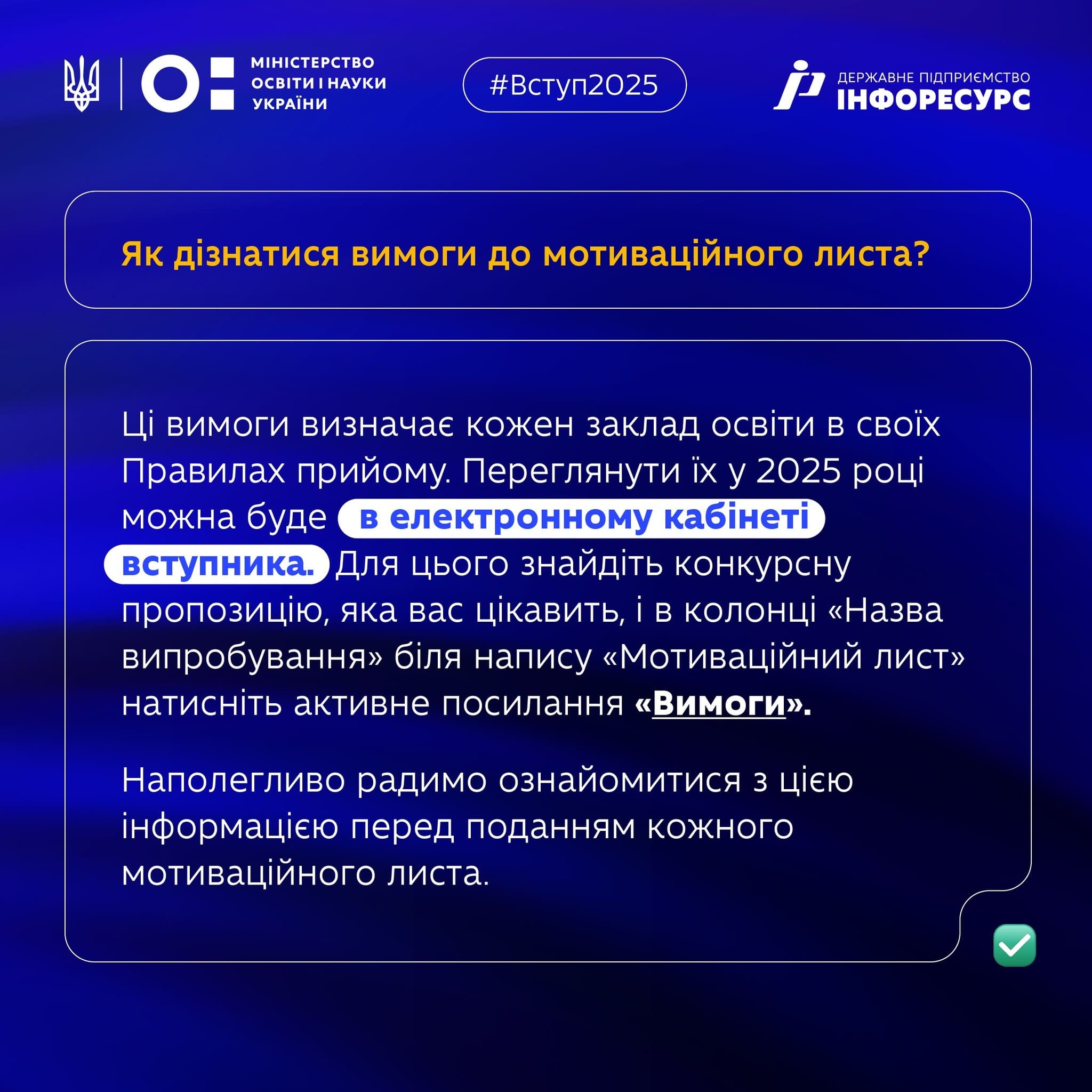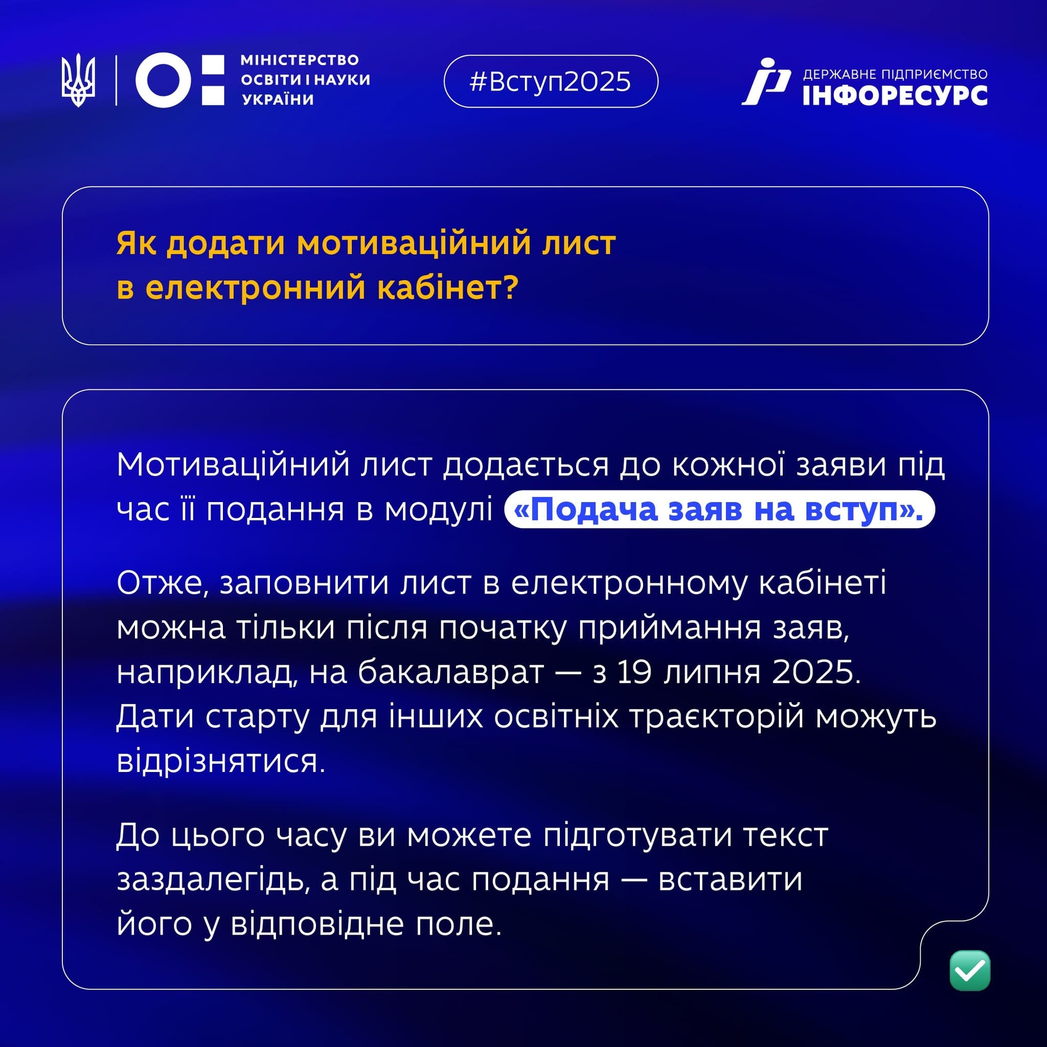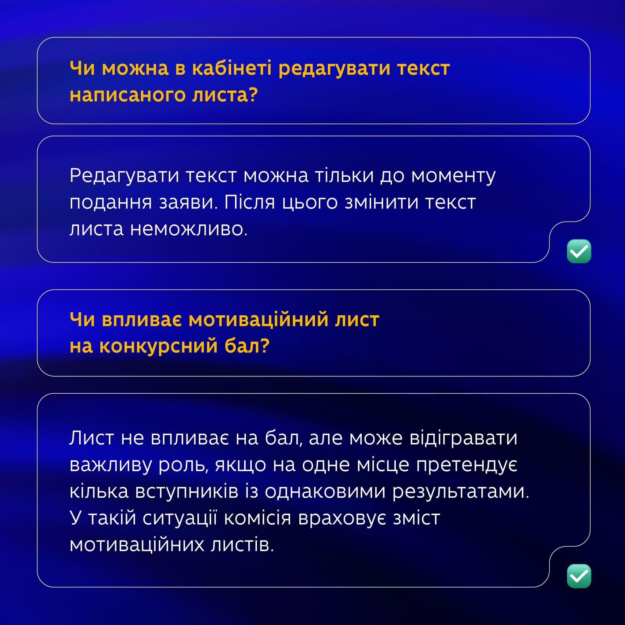 Усі вступники мають написати мотиваційні листи, які додаватимуться до кожної поданої електронної заяви.