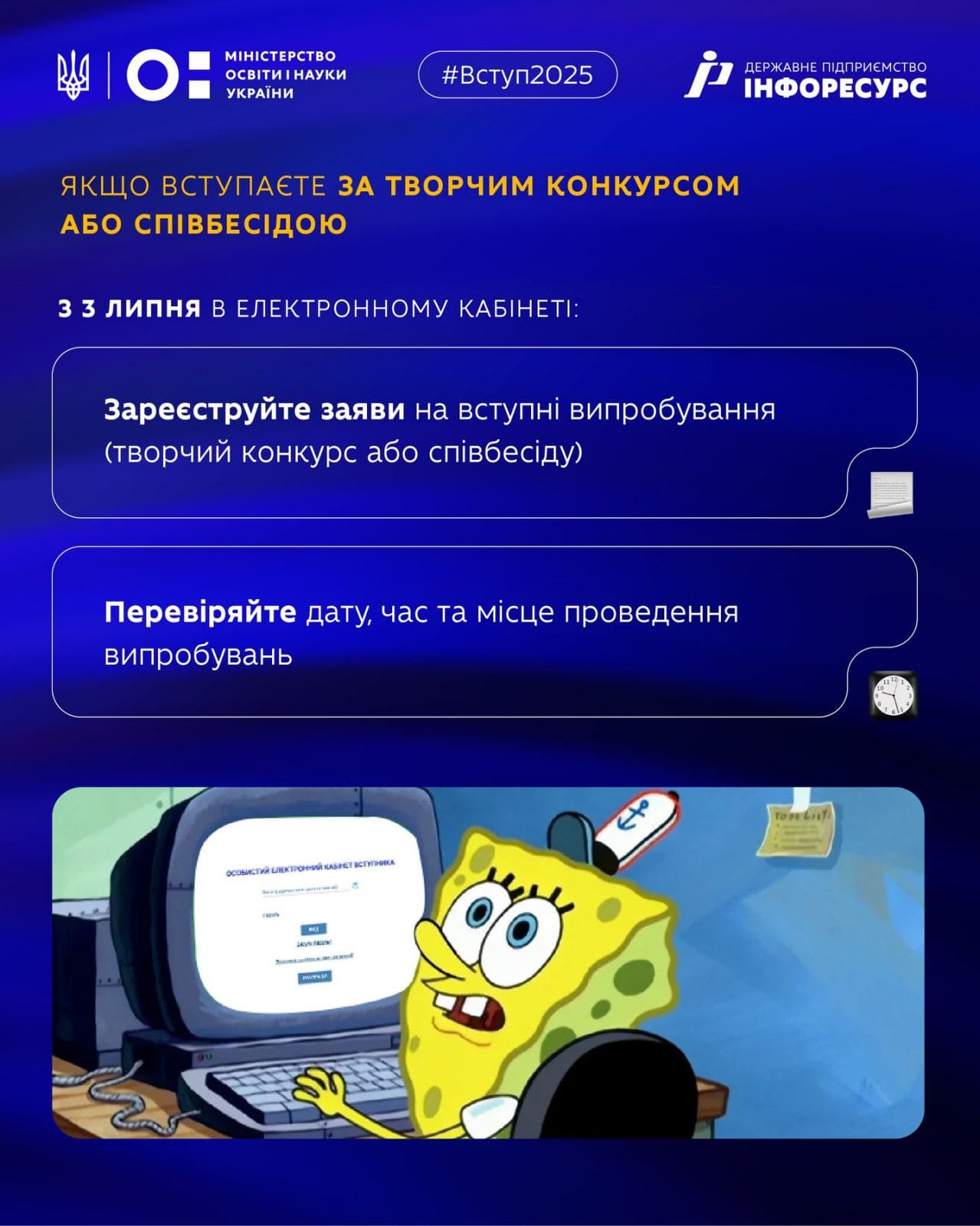 - вступники, які мають право на спеціальні умови вступу, зможуть узяти участь у конкурсному відборі на підставі співбесіди за тими ж предметами, які передбачено при складанні НМТ.